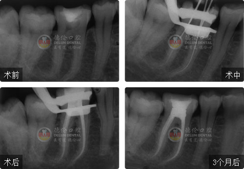 疑難點評:操作方面使用根管顯微鏡和超聲波系統細致尋找和定位根管,根管的敞開度較為完美,維持了根管的原有走向,充填致密,流暢,充填長度準確。